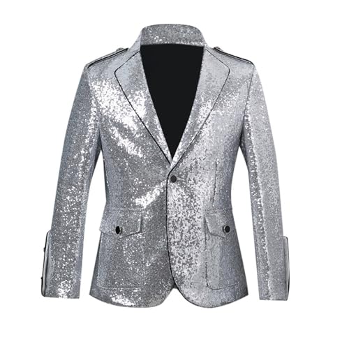 Générique Veste Disco Homme Brillante,Veste BoutonnéE Coupe Slim IdéAle pour Une Tenue DéContractéE Au Quotidien pour Les FêTes Le Printemps L'éTé L'Automne Et l'hiver (Grey 34)