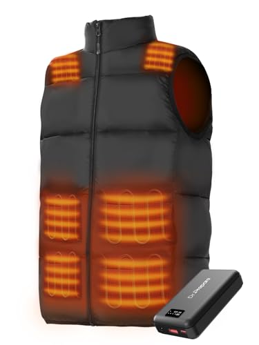 UNBON Gilet Chauffant Homme, Veste Chauffante Homme avec Batterie USB 10000mAh, Doudoune Chauffante Hommes sans Manches avec 3 Températures 6 Zones de Chauffage Électrique pour Moto Chasse, Noir, M