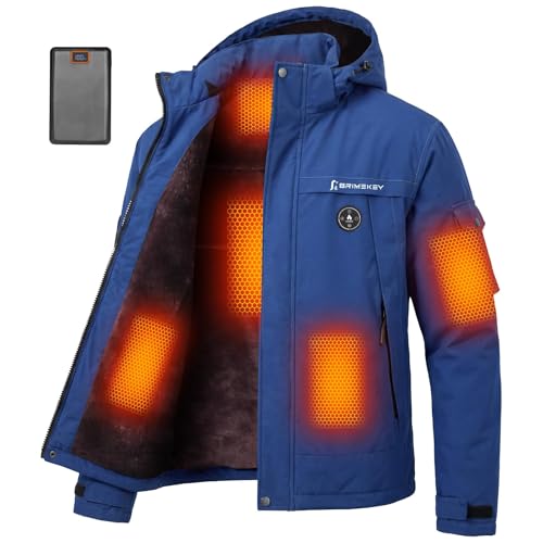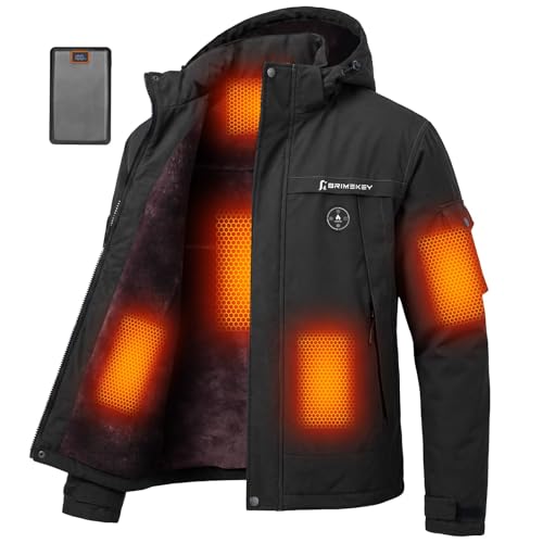 Brimekey Graphène Veste Chauffante Homme avec Doublure Polaire, Batterie HD 20000mAh 7.4V, 6 Zones de Chauffe et 3 Températures, Blouson Chauffant Homme d'hiver Imperméable et Coupe-vent pour Ski