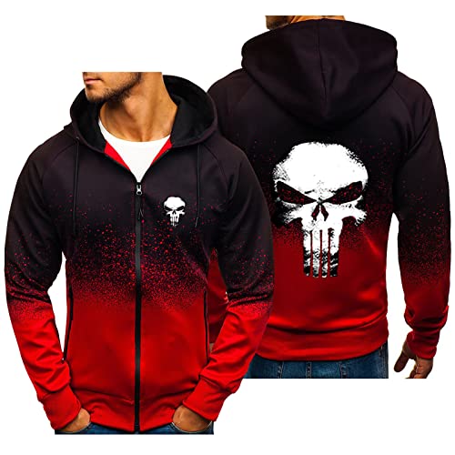 ILLUMAX Sweat-Shirt à Capuche Entièrement Zippé Pun.ish-ER, Veste de Travail Homme, Vetement Homme pour Printemps Automne-Red||XXL