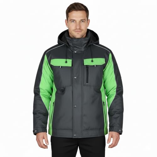 BWOLF OLYMPIA Veste d'extérieur pour homme Veste de travail pour homme hiver et imperméable coupe-vent Veste de travail chaude avec capuche, gris, XL