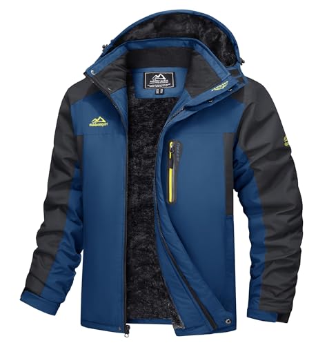 TACVASEN Veste de Randonnée Homme Parka Homme Hiver Capuche Amovible Veste Ski Softshell Blouson Hiver Chaud Coupe Vent Travail Chasse Jean Bleu, M