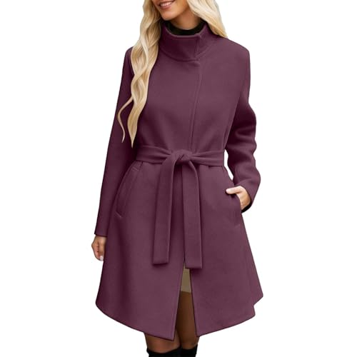 Generisch Veste d'hiver pour femme - Manteau en laine pour femme - Grandes tailles - Veste d'hiver chaude - Longue ligne A - Élégante cintrée - Manteau d'hiver rétro pour femme - Manteau classique à