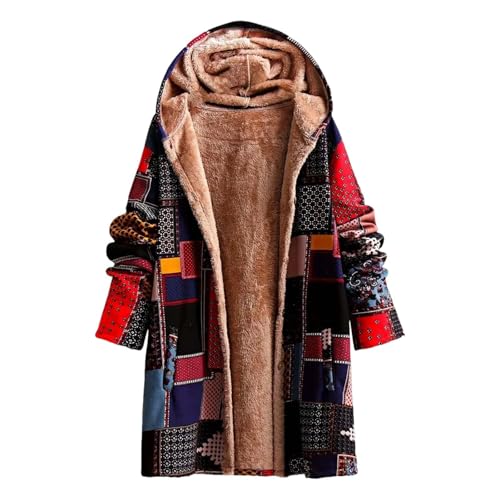 Generisch Manteau d'hiver en laine pour femme - Veste d'hiver pour femme - Longue et chaude - Grandes tailles - Élégant - Manteau d'hiver doublé - Inspiré ethnique - Avec capuche et veste en polaire