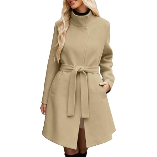 Generisch Veste en laine pour femme - Longue et chaude - Grandes tailles - Manteau d'hiver - Ligne A - Élégante cintrée - Manteau d'hiver rétro - Veste classique en laine - Beige