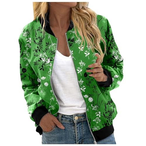 Bomber Femme Oversize, Veste Femme Printemps Été,Vestes DéContractéEs LéGèRes ZippéEs DéContractéEs Manteau Imprimé Floral Col Montant VêTements D'ExtéRieur Courts Hauts à Fermeture éClair