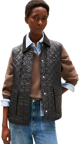 Tommy Hilfiger Veste sans Manches Femme Padded Nylon Slim Quilted Matelassée, Noir (Black), S