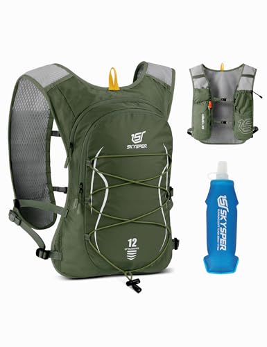 SKYSPER Gilet Trail Running 12L avec Gourde 500ml Sac Hydratation Veste Course Réfléchissante Respirante Poche Téléphone Homme Femme Marathon Jogging