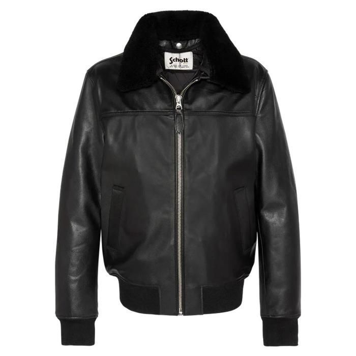 Veste Schott Bombardier en cuir homme Ref 67422 Noir