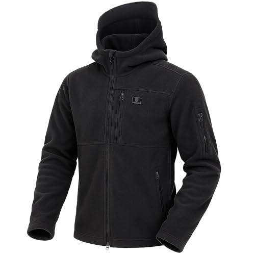 Iron Mountain Veste en polaire technique pour homme avec capuche, anti-boulochage, thermique, lourde, coupe-vent, fermeture zippée intégrale, Noir, XL