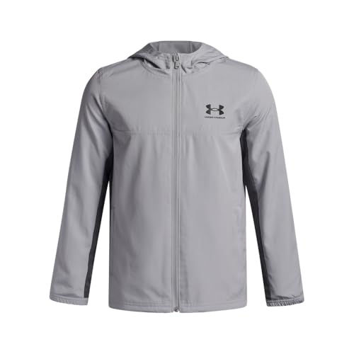 Under Armour Veste tissée Rival Garçons, Veste garçon déperlante et Respirante, Veste zippée en matière Extensible, Mod Gray/Castlerock/Black, YSM