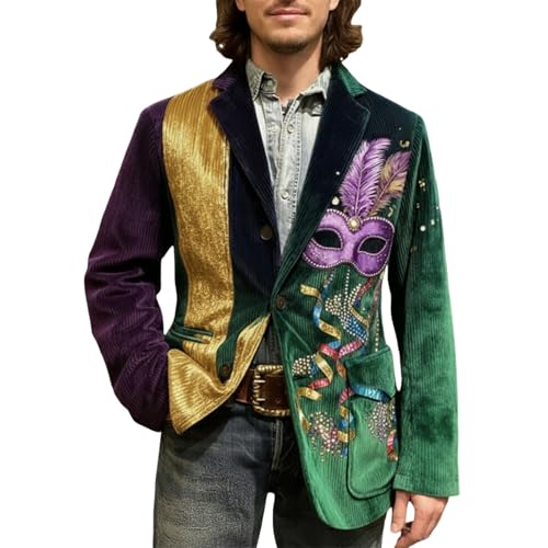 Générique Veste Velours Homme Grande Taille,Veste en Velours CôTelé à Imprimé Carnaval Style DéContracté, IdéAle pour Les Mariages, Les éVéNements Formels Et Les SoiréEs (Green, M)