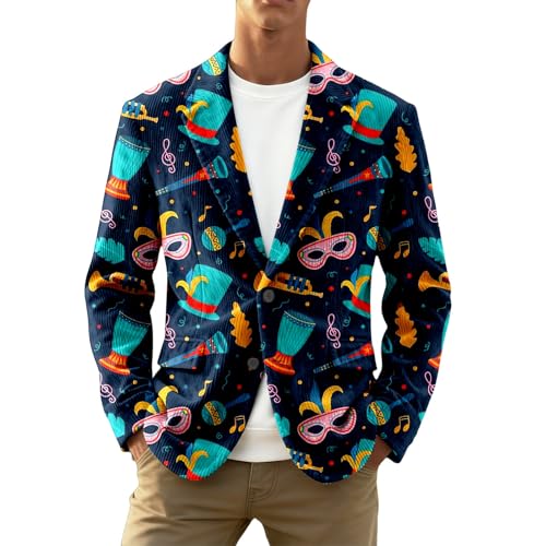 Générique Veste Velours Homme,Veste en Velours CôTelé à Imprimé Carnaval avec Un Col à Revers éLéGant Et Une Fermeture BoutonnéE sur Le Devant, IdéAle pour Les FêTes, Les Mariages (Dark Blue, XXL)