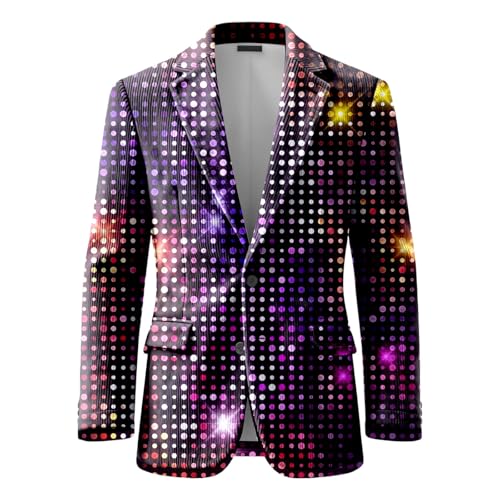 Générique Blazer Veste Homme Velours,Veste en Velours CôTelé à Imprimé Pailleté Carnaval avec Revers éLéGant Et Coupe Confortable, IdéAle pour Les FêTes Et Les SoiréEs (Purple, XXL)