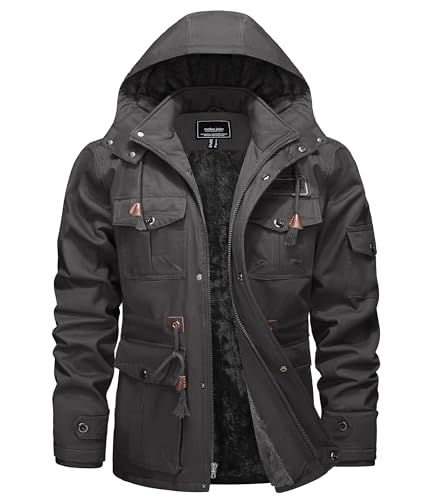 Veste Hiver Homme Chaude de Travail en Coton Polaire Grande Taille Militaire US Army Vintage Blouson à Capuche Tactique Extérieure Cargo Décontractée Coupe-Vent Gris