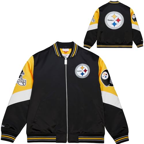 Mitchell & Ness Throw it Back Heavyweight Vintage Veste en satin (NFL) - Pittsburgh Steelers, Taille S, logos brodés, homme, femme, enfant, unisexe, printemps, été, automne, hiver