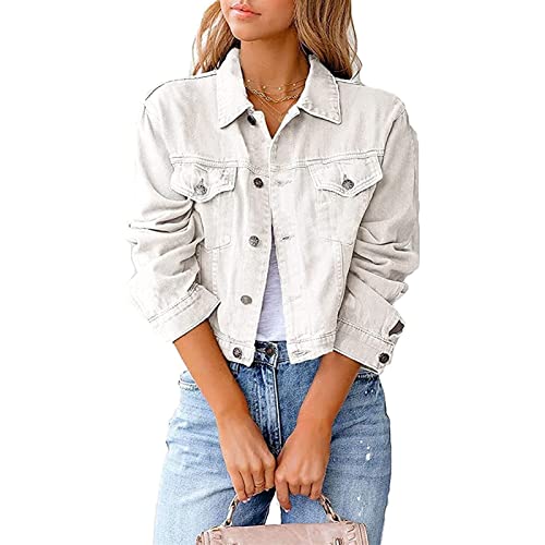 Sawmew Veste en Jean pour Femme Manteau Basique Boutonné Léger Vestes en Jean avec Poches (Color : White, Size : M)