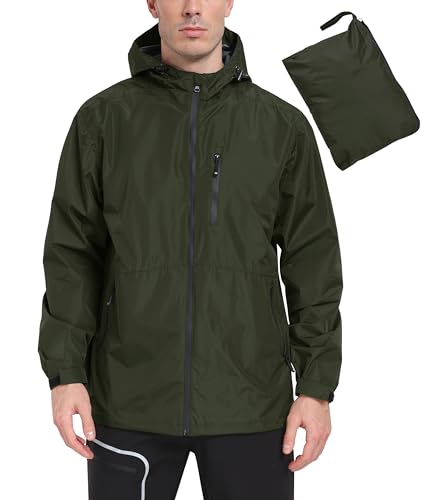 MoFiz Homme Vestes Imperméables Veste de pluie Pliable Légère Vêtements Imperméable Coupe-vent for Cyclisme Plein air Voyage Randonnée Course à pied Vert armée Taille EU XL