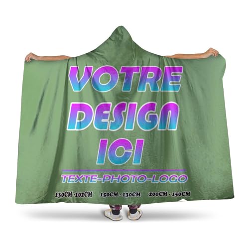 Pilou Pilou Femme Homme Sweat Plaid Personnalisé Oversize en Poncho Polaire Couverture à Capuche avec Photo Texte Objet Personnalisable Pull Plaid Vetement Hiver Blanket Chaud Cadeau Personnalisée
