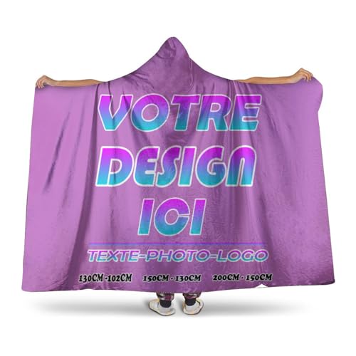 Pilou Pilou Femme Homme Pull Plaid Personnalisé Oversize en Poncho Polaire Couverture à Capuche Votre Photo Texte Objet Personnalisable Sweat Plaid Vetement Hiver Blanket Chaud Cadeau Personnalisée