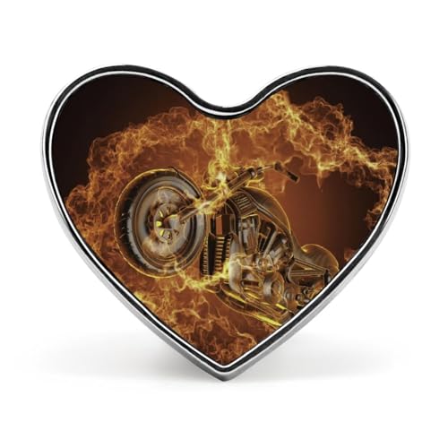 Broche bouton en forme de cœur, motif moto, sport dangereux, pour chapeau, vêtement ou sac.