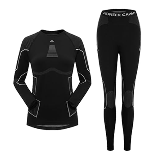 ALPIDEX sous vêtement Thermique Femme Tenue Fonctionnel Ensemble Ski Chaud Flexible Respirant Hiver Automne, Taille:l/XL, Couleur:Noir-Gris