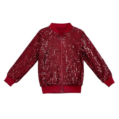 Veste Fille 12 Ans - Vestes À Paillettes pour Filles Veste Zippée À Manches Longues pour Enfants Vêtements De Personnalité À La Mode Brillants (Red 10-12 Years)
