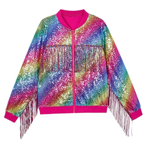 Blouson Fille 12 Ans - Vestes À Paillettes pour Filles Veste Zippée À Manches Longues pour Enfants Vêtements De Personnalité À La Mode Brillants (Multicolour 8-10 Years)