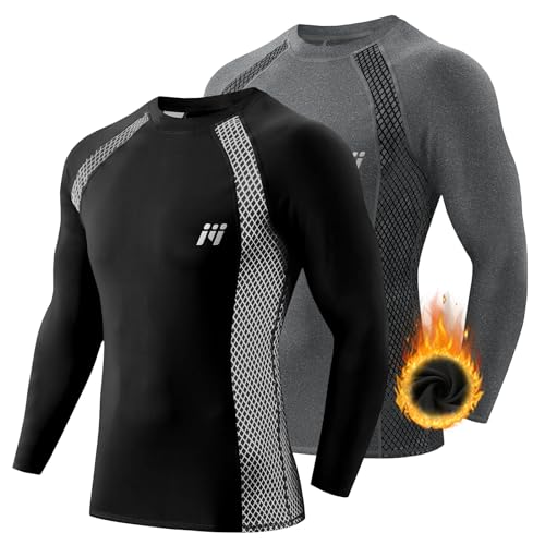 MEETWEE Tee Shirt Thermique Homme, Manche Longue Maillot de Compression Base Layer sous-Vêtements Thermique pour Sports Ski Running, Lot de 2, Noir et Gris, Taille XL
