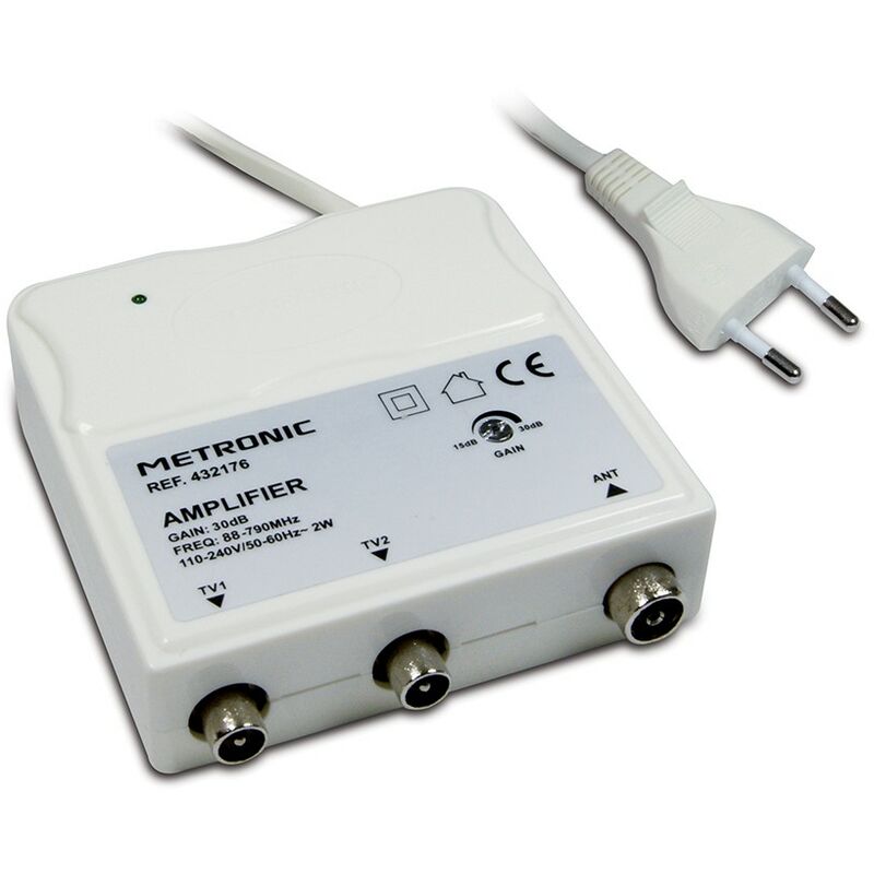 METRONIC Amplificateur d'intérieur FM/VHF/UHF à réglage de Gain 30 DB avec Filtre 4G - Blanc - Metronic 332176