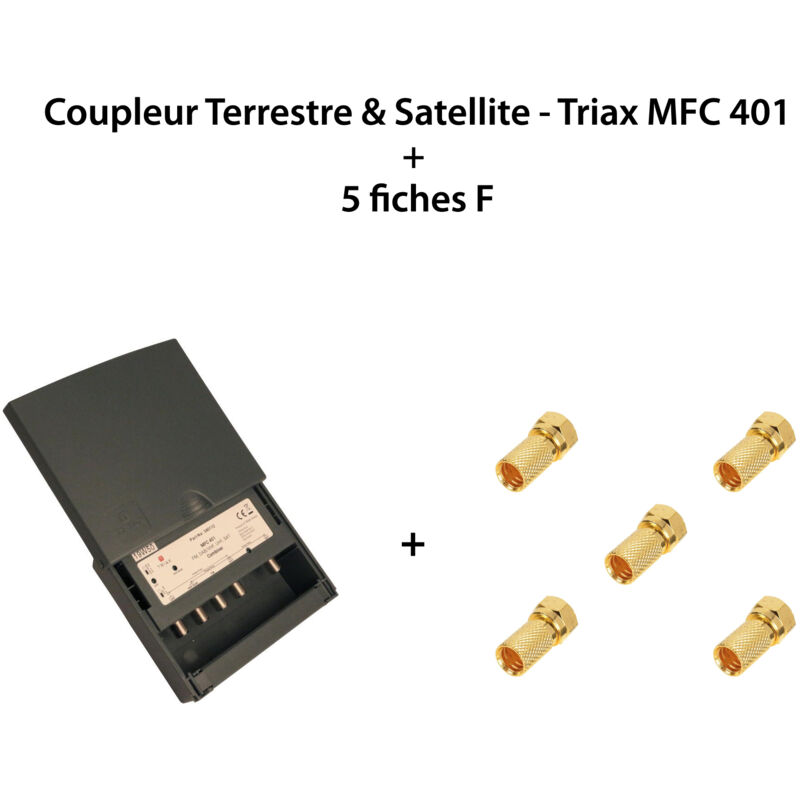 M-e - Coupleur Terrestre & Satellite - Triax mfc 401 + 5 fiches f - 4 Entrées, 1 sortie, fm / dab-vhf / uhf / sat, Filtre lte 700 - Noir