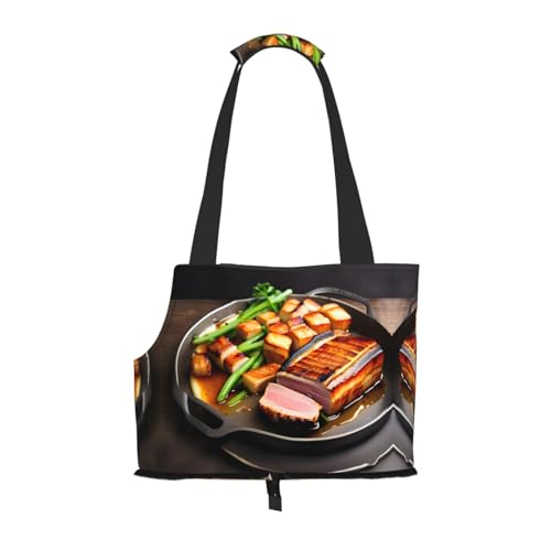 Convient pour les petits chiens et chats, shopping et voyage, sac à double usage, sac à bandoulière portable imprimé viande grillée pour animaux de compagnie