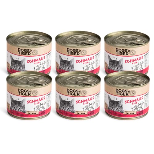 Dogs'n Tiger Adult Lot de 6 boîtes de pâtée pour Chats, pâtée pour Chats, Recette adaptée aux Animaux avec 70% de Viande de bœuf – sans Sucre, céréales et arômes artificiels