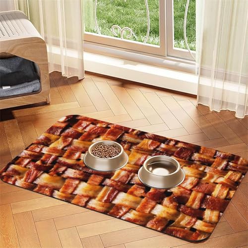 Viande de Bacon,Tapis d'alimentation pour Animaux de Compagnie, Sets de Table en Cuir PU pour Chats et Chiens,40x60cm