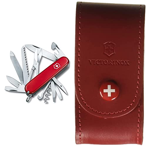 Victorinox Ranger Couteau de Poche Suisse, Léger, Multitool, 21 Fonctions, Lame, Tire Bouchon, Ciseaux, Rouge & Etui cuir pour Couteau Suisse, rouge