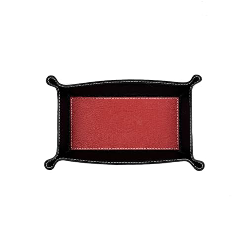 FrasiBags Vide Poche en Cuir Véritable - Vide Poche Entree - Plateau de Rangement Rectangulaire Pratique pour Montres, Clés, Pièces de Monnaie et équipement de Bureau, Moyenne (Rouge/Noir)