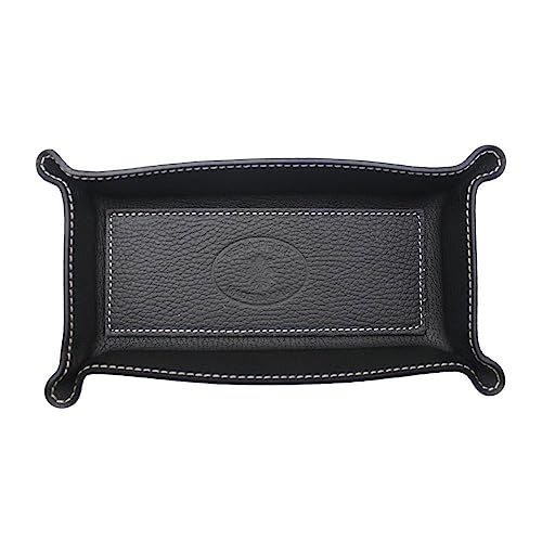 FrasiBags Vide Poche en Cuir Véritable - Vide Poche Entree - Plateau de Rangement Rectangulaire Pratique pour Montres, Clés, Pièces de Monnaie et équipement de Bureau (Noir)