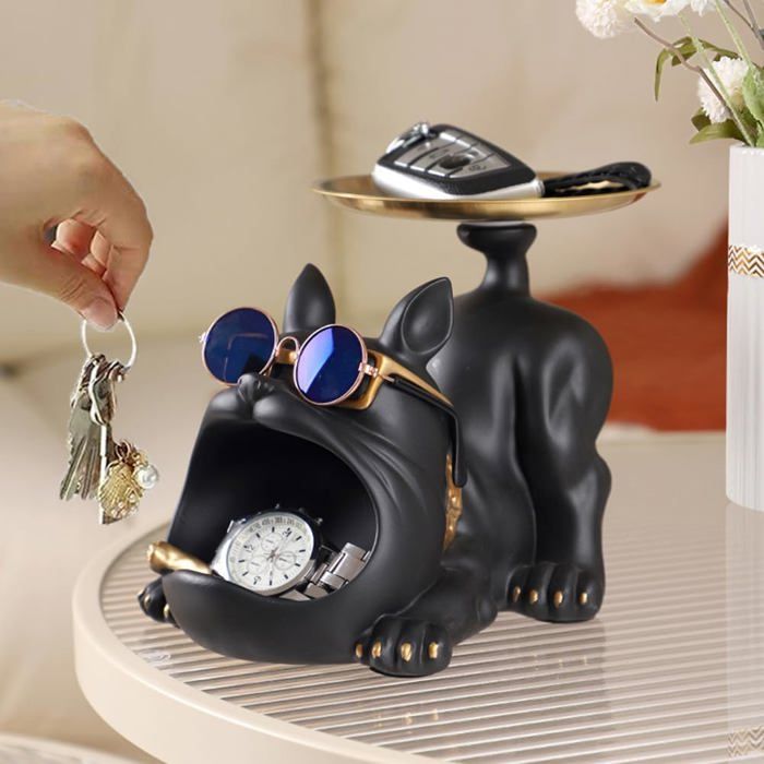 Bouledogue Français Statue Decoration Interieur,Vide Poche Entree,Vide Poche Plateau Decoratif,Rangement Clef,Statue en Résine,Statue Animaux Decoration Maison