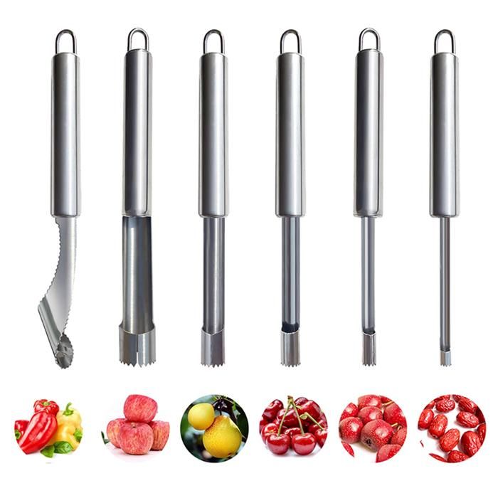 Ensemble de 6 dénoyauteurs et vide-fruits multifonctions pour pommes poires cerises jujubes baies et piments argentét