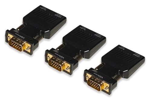 Link LKADAT12903 Lot de 3 adaptateurs PC VGA + Audio 3,5 mm Stéréo vers HDMI - Convertisseur vidéo Full HD 1080p pour TV, moniteurs et projecteurs