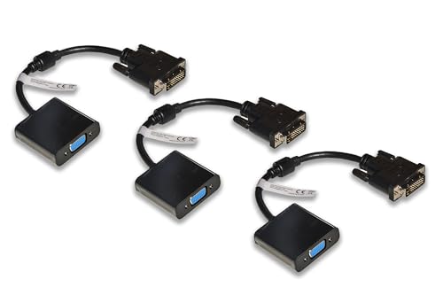 Link LKADAT12103 Lot de 3 adaptateurs vidéo Actifs DVI-D (24+1) mâle vers VGA 15 pôles Femelles - Convertisseur vidéo Full HD 1080p pour PC, moniteurs et projecteurs