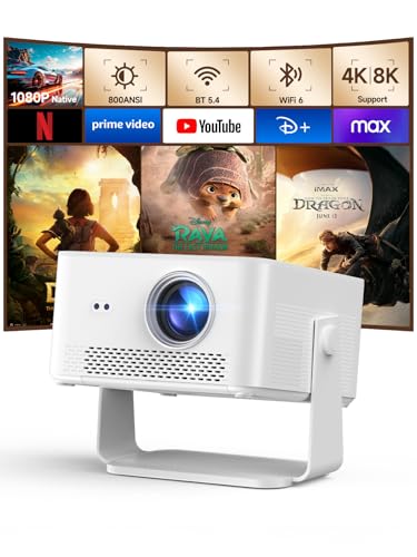 Videoprojecteur, Retroprojecteur 1080P/4K/8K Supporte avec Android 14, 480 ANSI Lumens, Projecteur Video Portable avec WiFi 6 Bluetooth 5.4, 270° Rotation, Mini Projecteur pour PC/Lap/Stick/HDMI