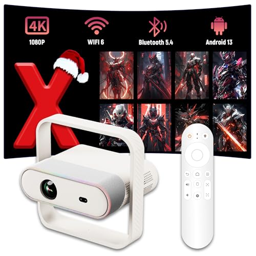 Mini Projecteur 2025 Android 13.0 Videoprojecteur 4K 1080P Supportée, Portable Projecteur Video WiFi6 Bluetooth, Auto Keystone, 180° Rotation Compatible avec Phone/HDMI/USB/TV Stick
