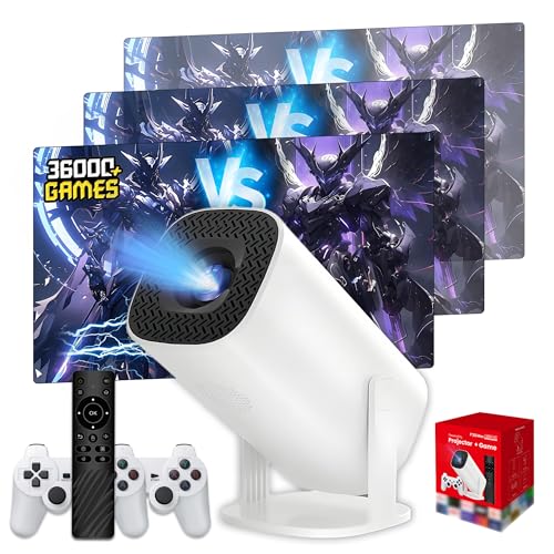 P30 Ultra Mini Projecteur Video avec Contrôleurs+Télécommande Vocale,36000+ Jeux,Android 11 Vidéoprojecteur,Auto Keystone Retroprojecteur avec Wi-Fi Bluetooth,14 émulateurs Video Projecteur 1280*720P