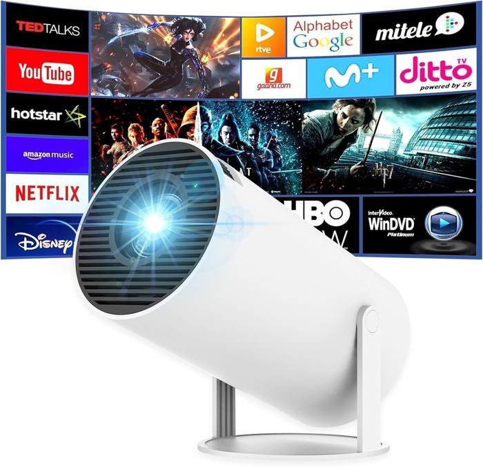 Videoprojecteur Mini Projecteur HD WiFi + BT5 Projecteur Video android11, Automatique de La Direction Verticale, Taille de Projection 40~150 Pouces 180 °