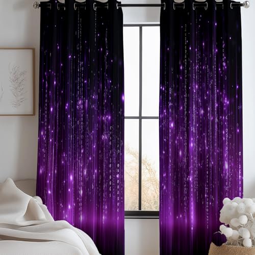 Rideau Occultant Thermiques Moderne Jeux Vidéo Numérique Projecteur Salon Rideaux Œillets Draperies Intérieurs pour Maison Cuisine Chambre Enfant, Fenêtre Décor 2 Panneaux 75 x 166 cm, Violet
