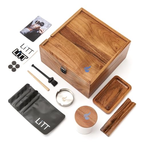 LITT Boîte de rangement en bois avec plateau à rouler intégré et accessoires – Rangement discret pour un style de vie moderne