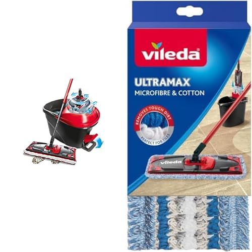 Vileda ULTRAMAX Turbo Kit Lavage Sol Complet, Balai, Housse en Microfibre & Housse Micro & Coton pour Balai à Plat Ultramax, 120g