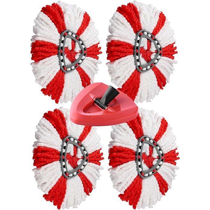 HAOPYOU 4 pcs Recharge Serpillre et 1 pcs Base Rouge Compatible avec Vileda Turbo et Easy Wring and Clean Serpillere Tte SERPILLERE