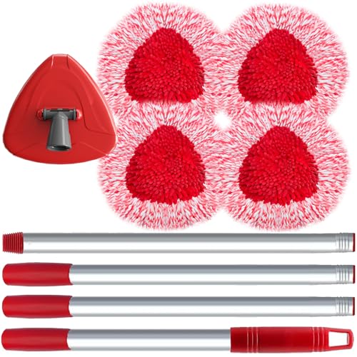 DLAIMI Tête de vadrouille de Remplacement,Base,Manche Compatible avec Vileda Turbo 3-en-1 la vadrouille en Microfibre,Housse de tête de vadrouille Triangulaire et Manche de vadrouille